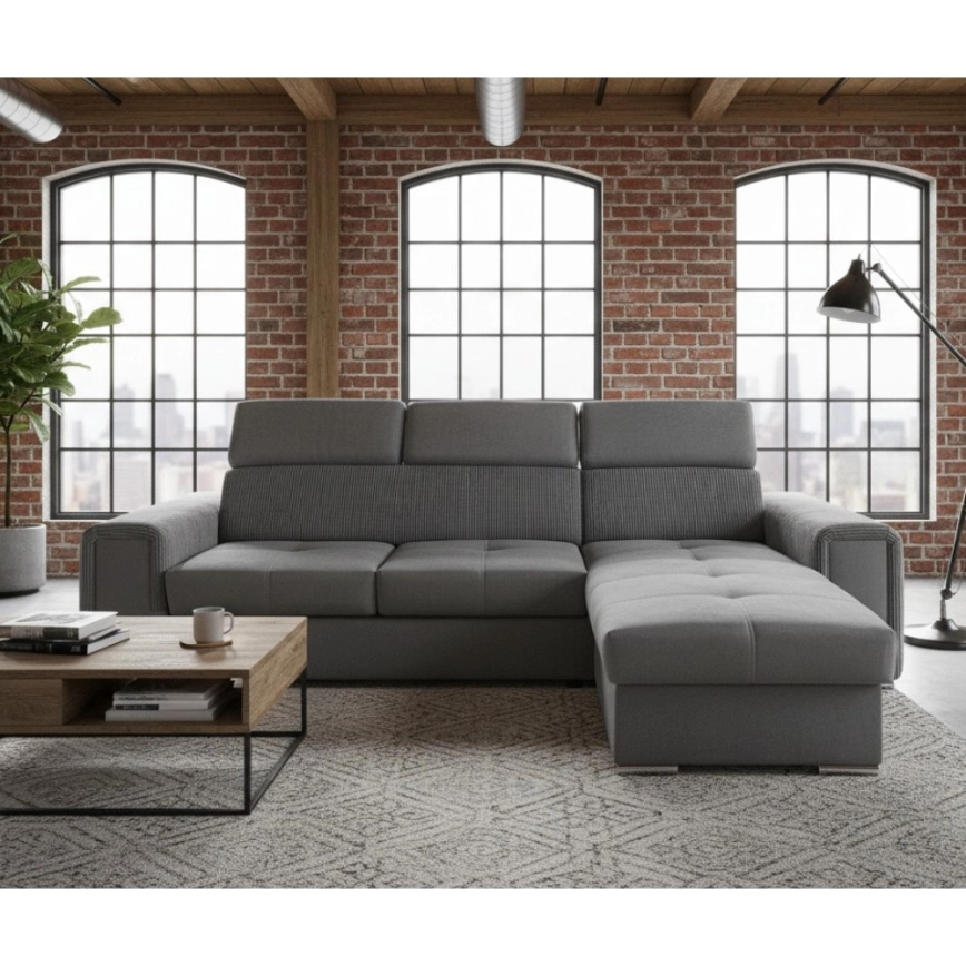 • Amplio sofá esquinero en forma de L ofrece comodidad y un diseño moderno.