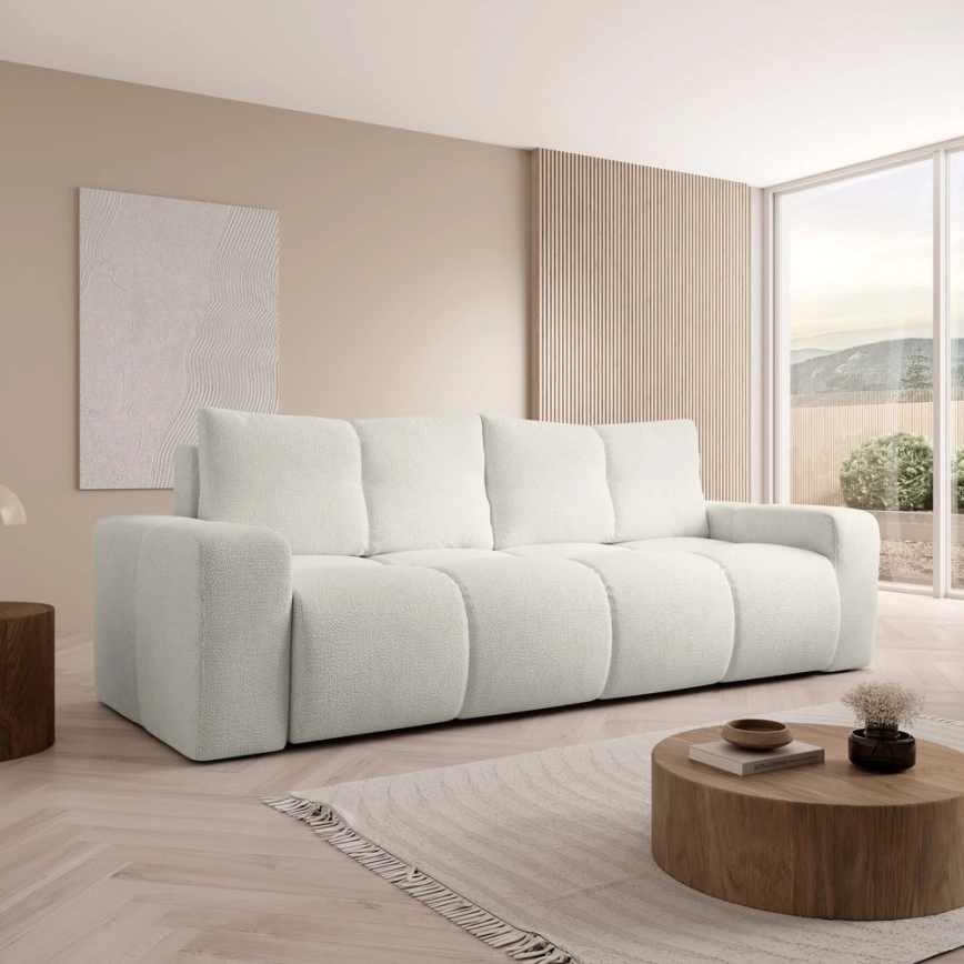 Sofá cama tapizado de 3 plazas con arcón ALMADA beige