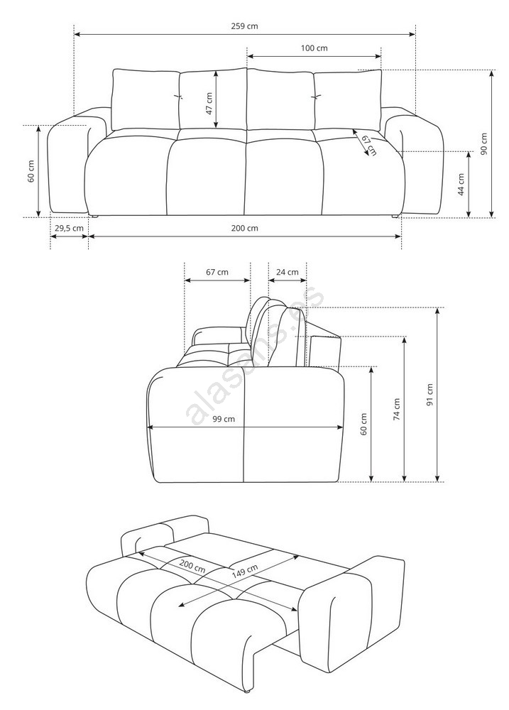 • El sofá dispone de amplio espacio de almacenamiento para guardar ropa de cama y otros artículos estacionales.