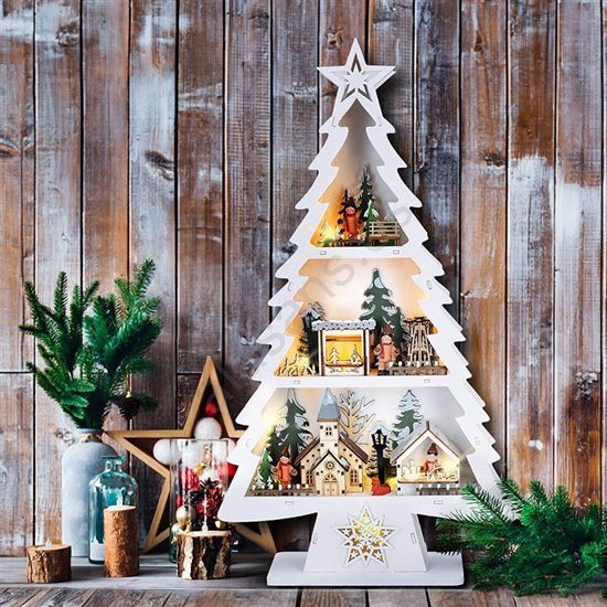Decoración navideña LED 13xLED/2xAA — árbol de madera