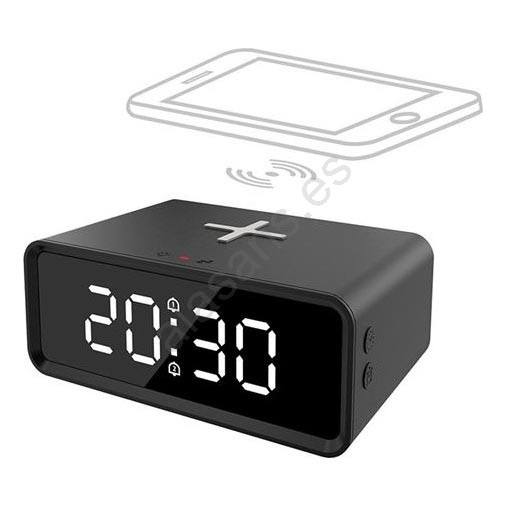 Reloj digital con cargador inalámbrico Qi 230 V / CR2032, negro