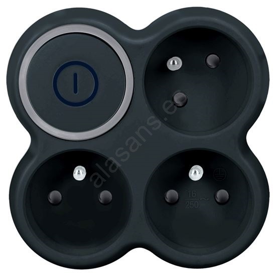Regleta de enchufes con interruptor, 3x 10 A, negra