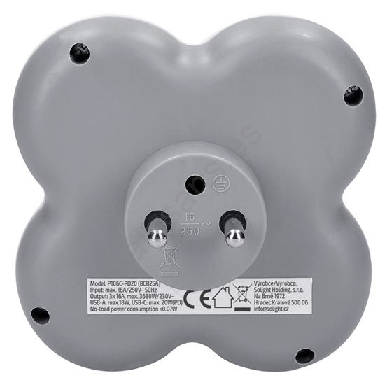 Regleta con 3 tomas de 16A y cargador rápido USB A+C 20W