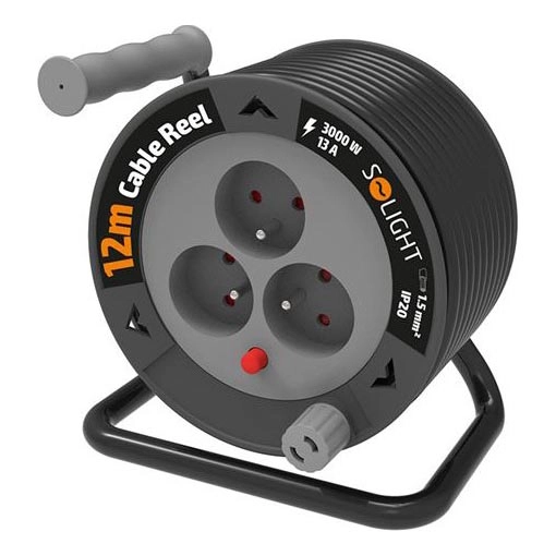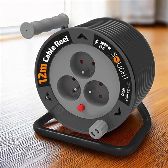 Enrollador de cable con 3 enchufes, 12 m