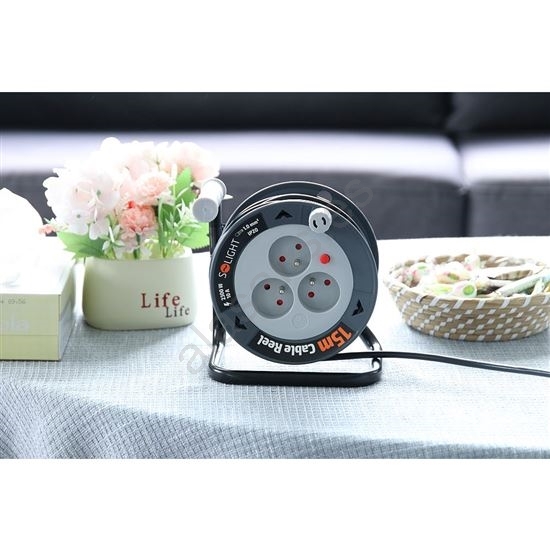 Cable de extensión en carrete, 3 enchufes, 12 m
