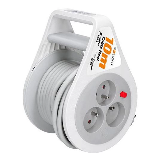 Enrollador de cable de extensión, 3 enchufes, 10 m