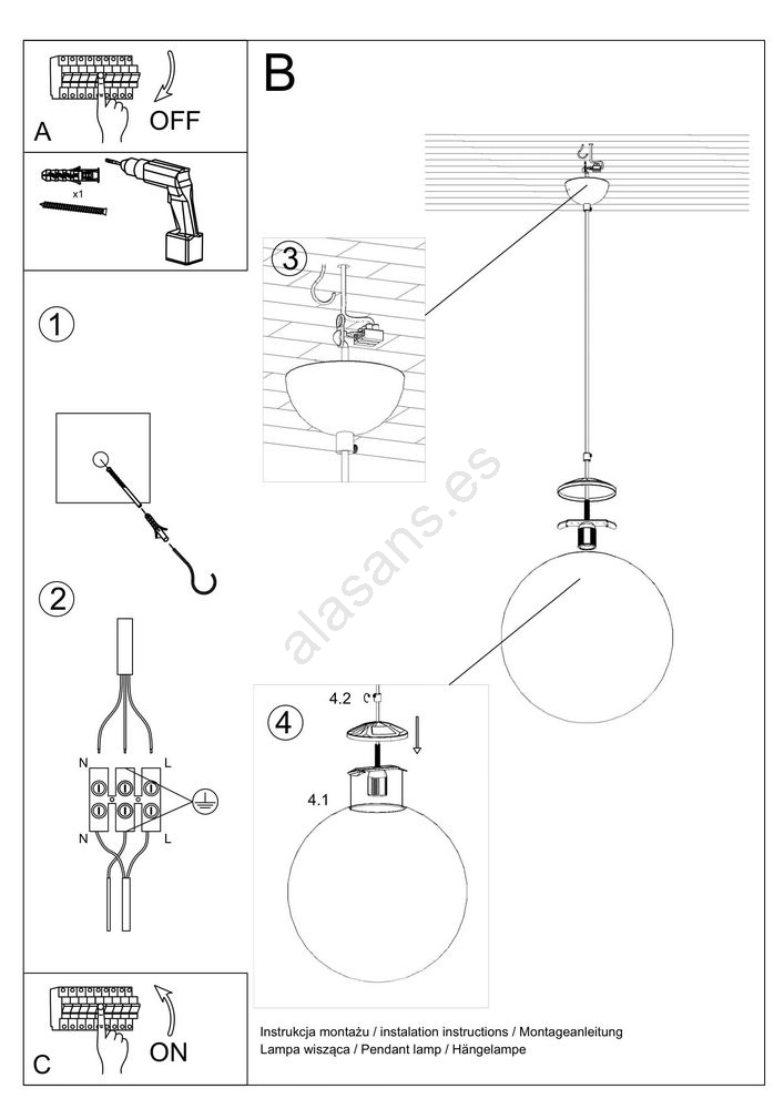 Lámpara colgante con cable TOYA 1xE27/60W/230V Ø 20 cm blanco/dorado
