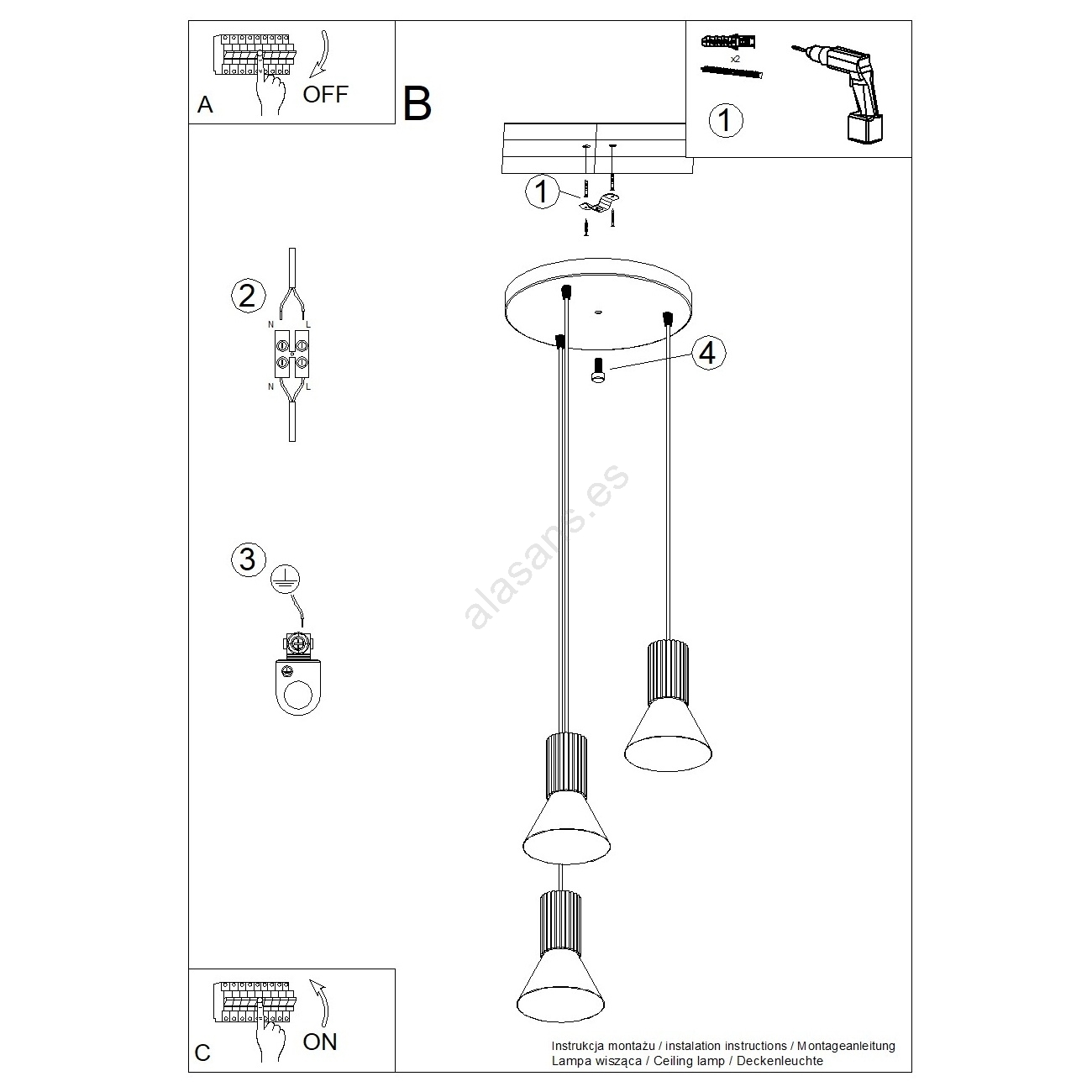 • Lámpara colgante con cable ESTRIA 3xE14/10W/230V, diámetro 30 cm, azul