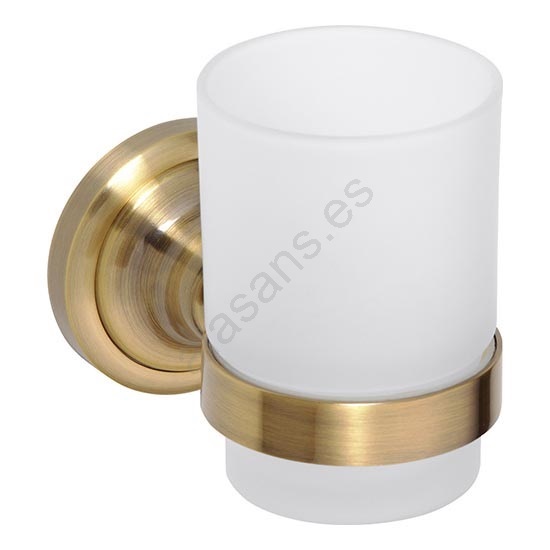 • Elegante soporte para cepillos con acabado en bronce para un baño con estilo.