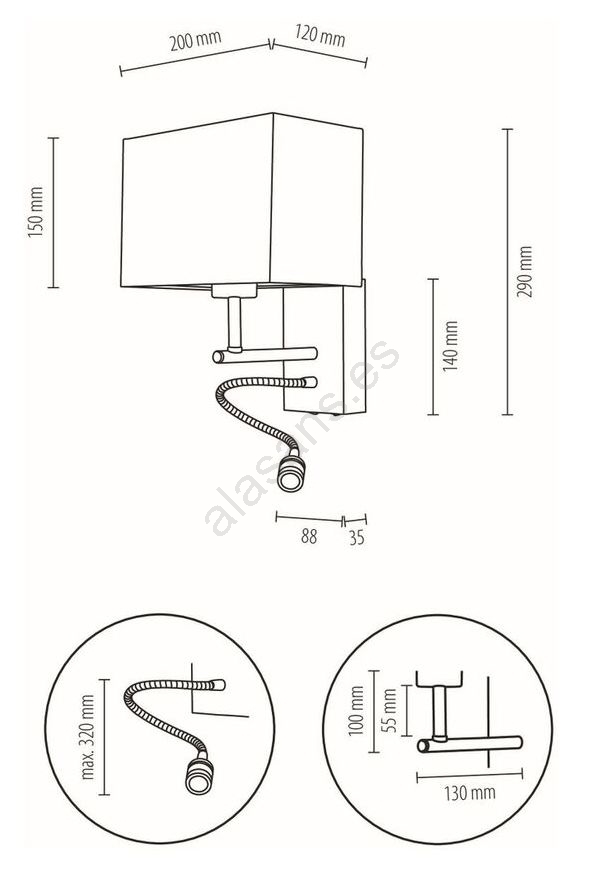 • Dos fuentes de luz con interruptores independientes directamente en el cuerpo del accesorio.