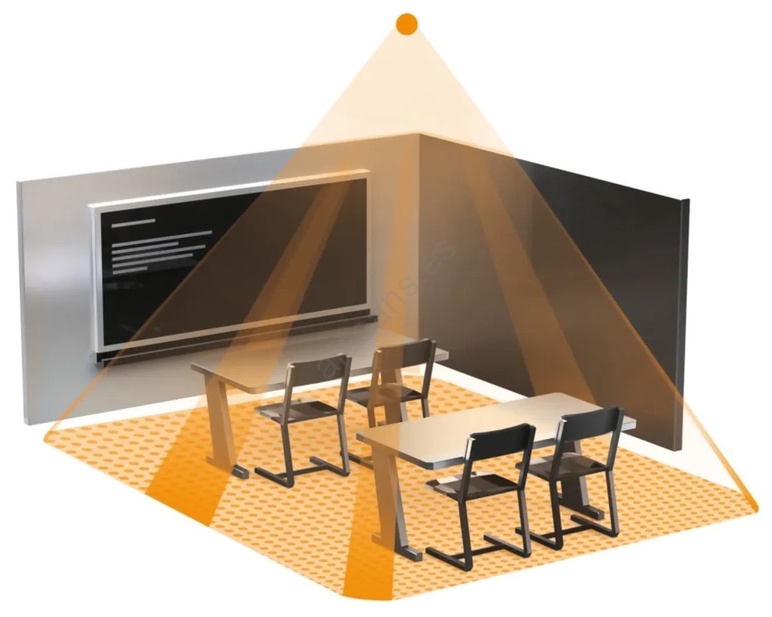 • Sensor infrarrojo de alta precisión con un área de detección de presencia 49 m² (7 x 7 m).