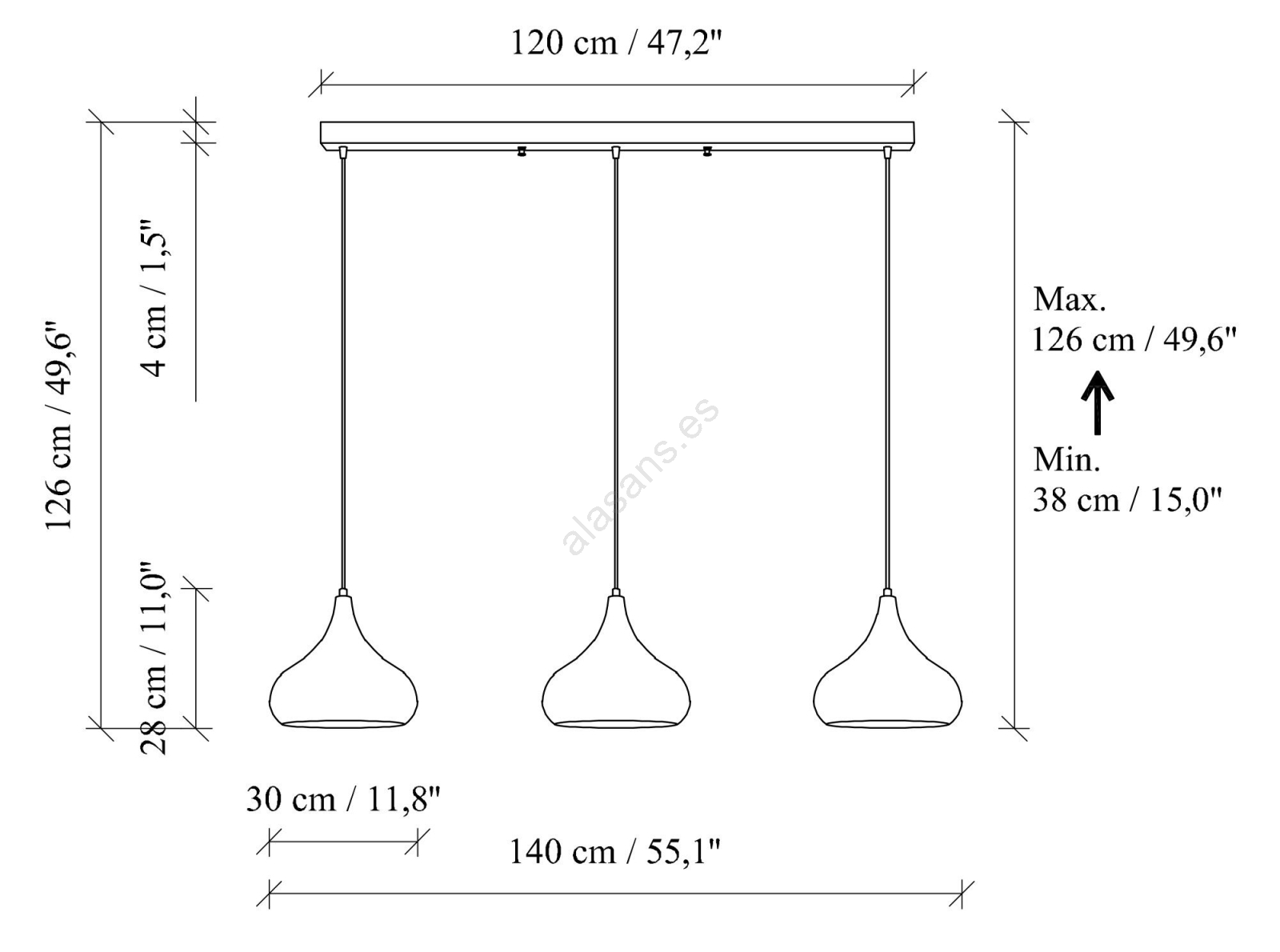 • Lámpara colgante con cable MUBA 3xE27/40W/230V, acabado en cobre