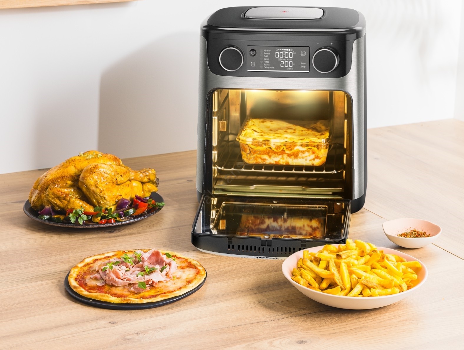 • Combinación de freidora de aire, grill y horno con 9 programas automáticos.