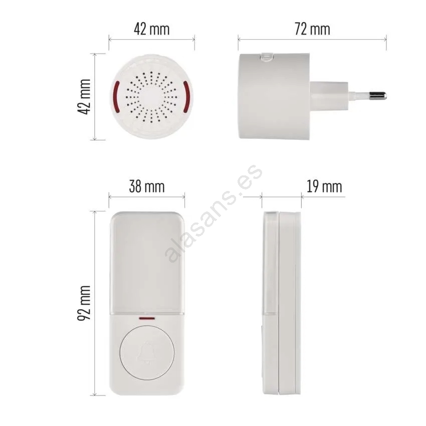 • Alcance del botón de hasta 150 m en espacio abierto – ideal para casas, apartamentos y oficinas.