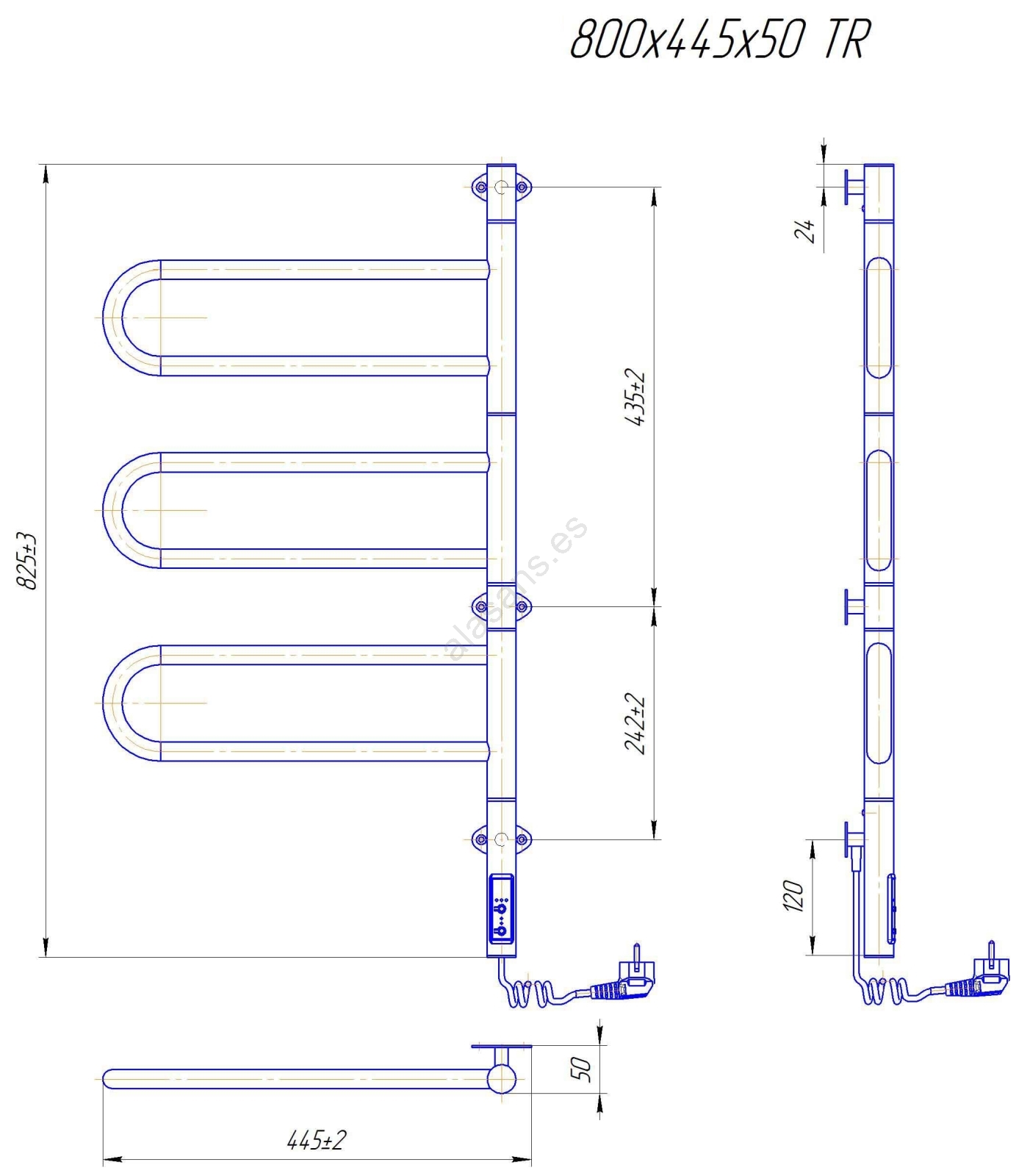 Toallero eléctrico giratorio TRISTAR 80W/230V 80x44,5 cm IP44 acero inoxidable/cromo brillante