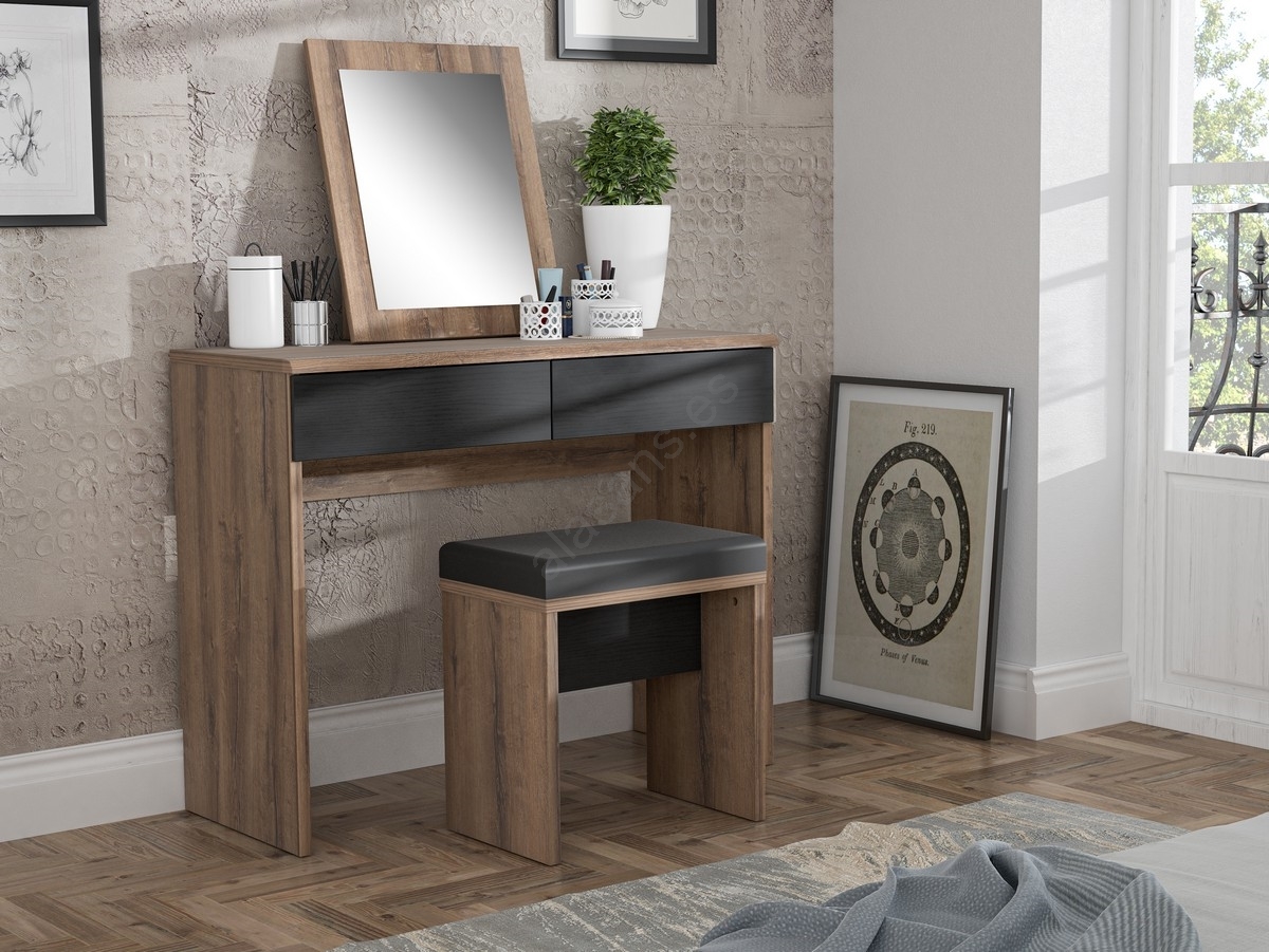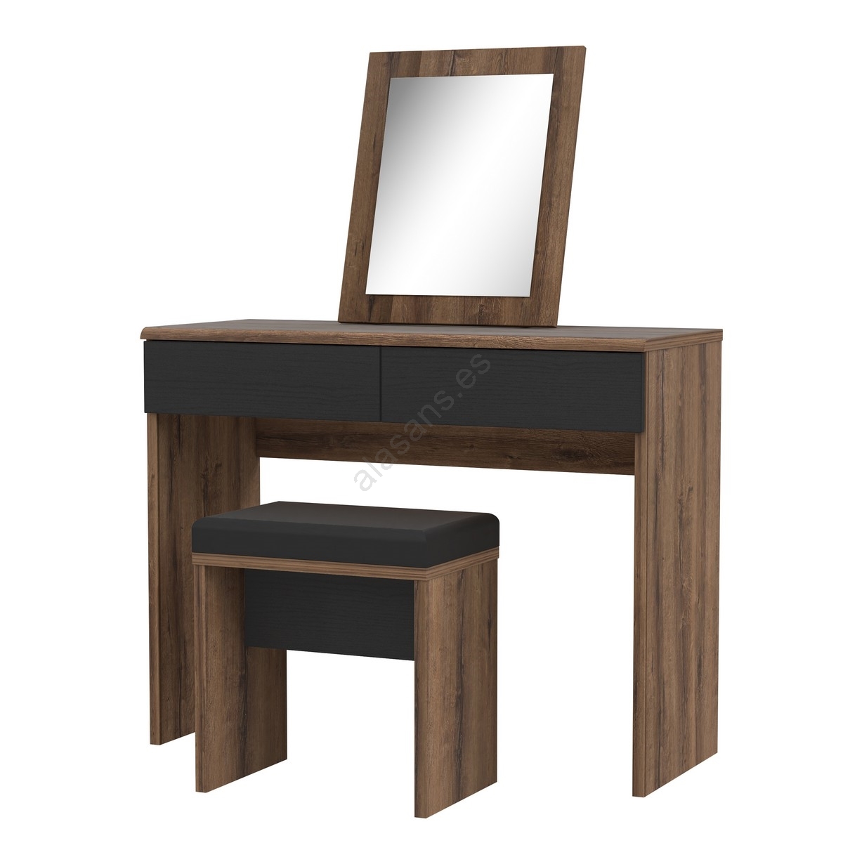 Tocador JUNO con banqueta, 45 x 29,6 cm, marrón/negro