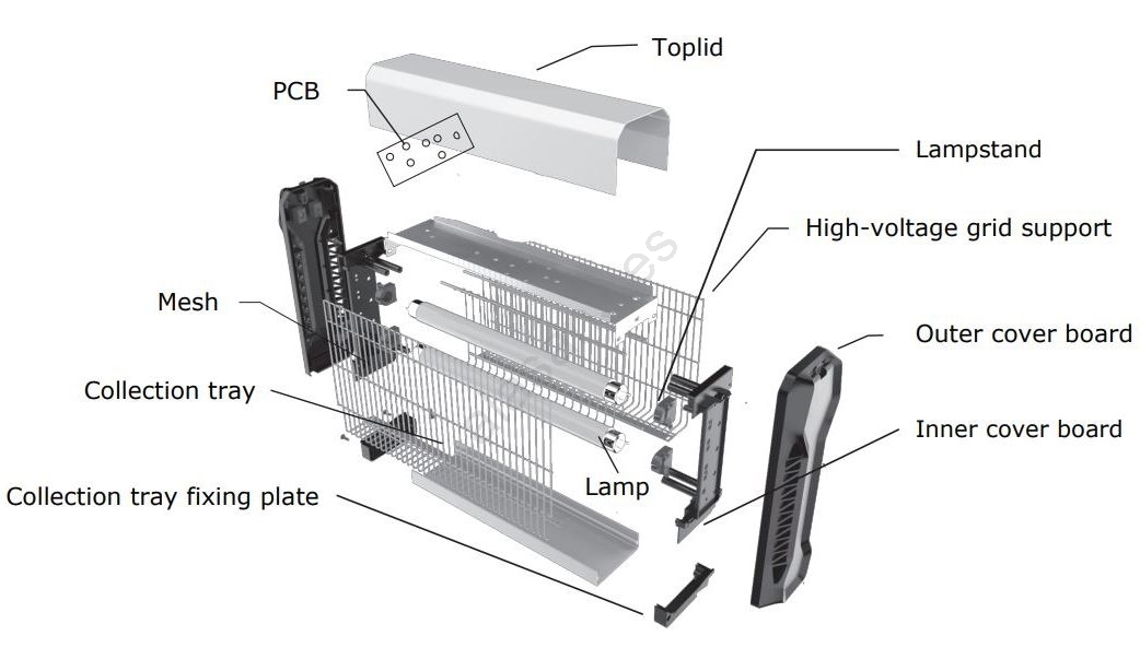 • Bandeja extraíble y lavable para recoger insectos muertos.