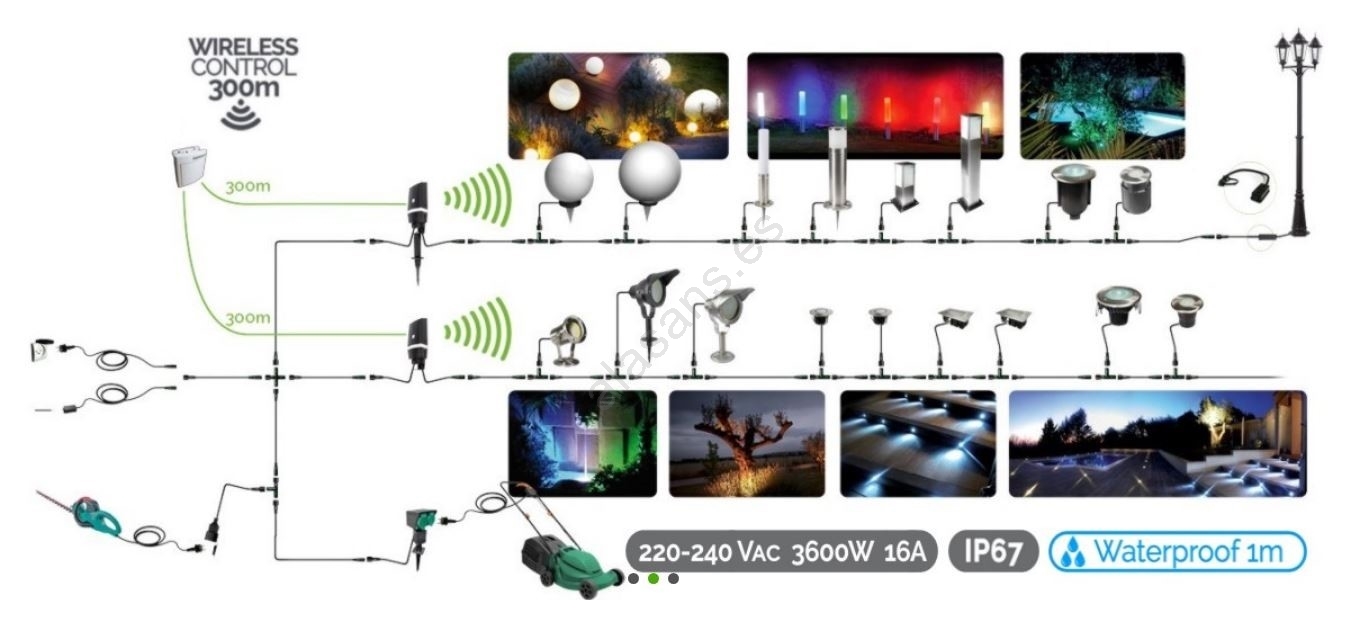 • Con el interruptor, puede controlar la iluminación a una distancia de hasta 300 metros.