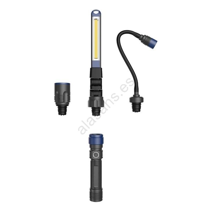 • Ofrece una luminosidad de 380 lm y tres cabezales intercambiables (estándar, flexible, tira LED).