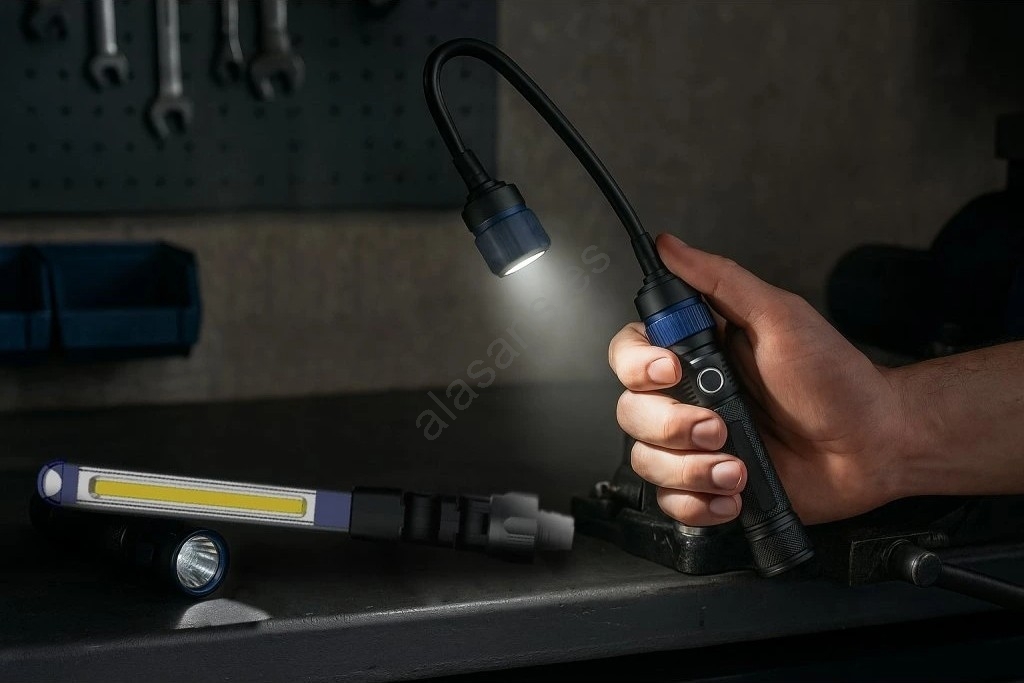 • El cabezal flexible, con 190 lm y posibilidad de orientar y ajustar la dirección de la luz, permite iluminar incluso los puntos de difícil acceso.