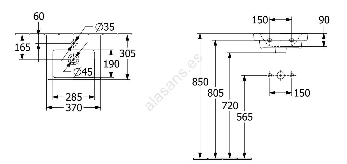 Villeroy & Boch 43703701 - Lavabo suspendido SUBWAY 37x30,5 cm cerámica/blanco
