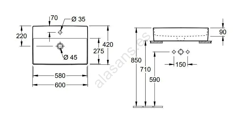 Villeroy & Boch 4A076001 - Lavabo sobre encimera MEMENTO 60x42 cm cerámica/blanco