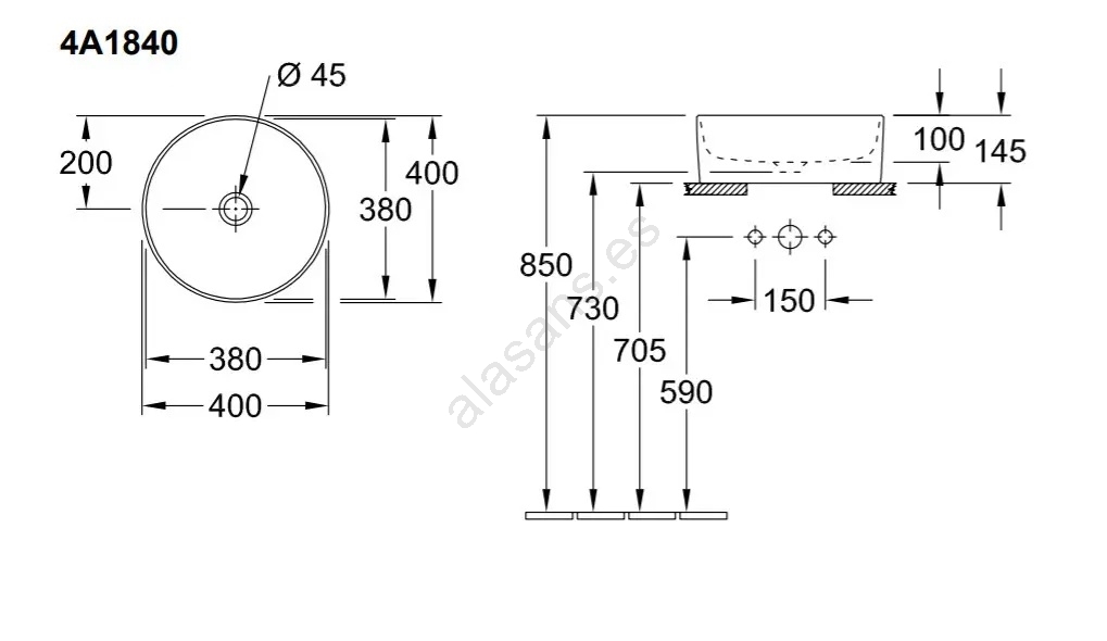 Villeroy & Boch 4A184001 - Lavabo sobre encimera COLLARO Ø 40 cm cerámica/blanco