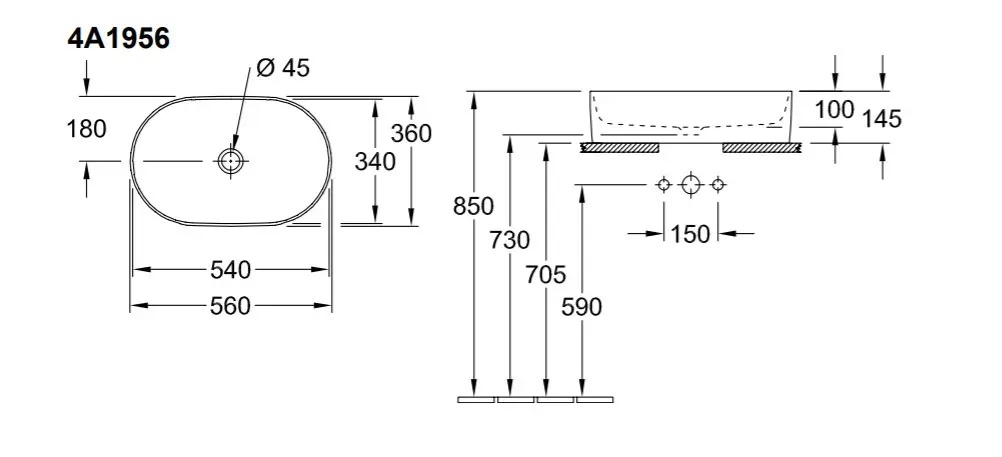 Villeroy & Boch 4A195601 - Lavabo sobre encimera COLLARO 56x36 cm cerámica/blanco