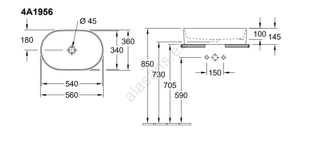 Villeroy & Boch 4A1956R1 - Lavabo sobre encimera COLLARO 56x36 cm cerámica/blanco