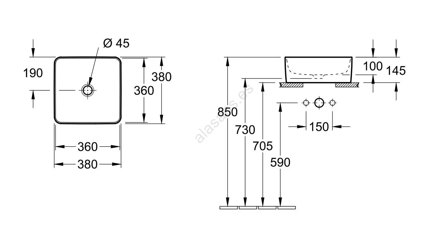 Villeroy & Boch 4A213801 - Lavabo sobre encimera COLLARO 38x38 cm cerámica/blanco