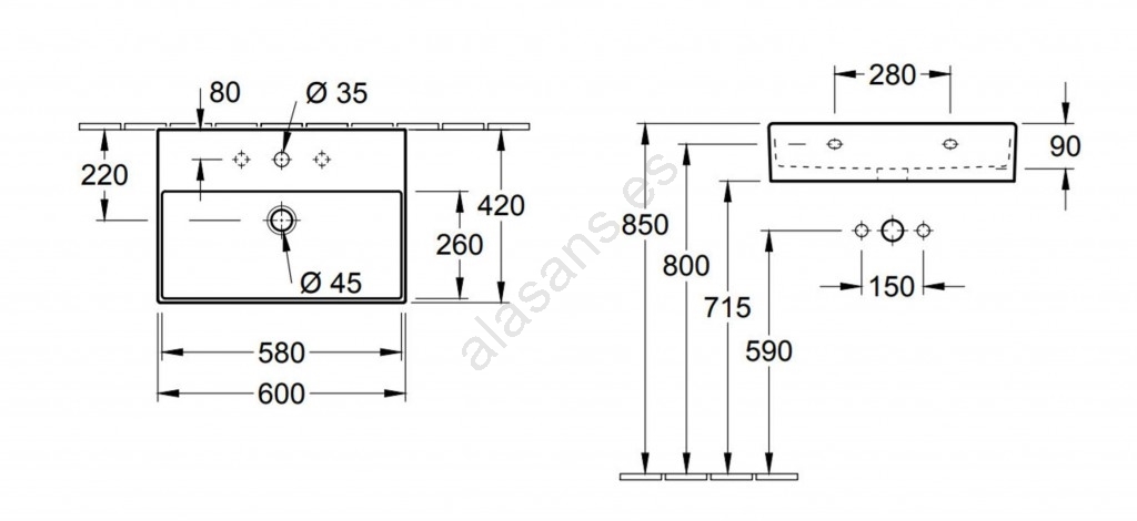 Villeroy & Boch 4A226001 - Lavabo mural MEMENTO 60x42 cm cerámica/blanco