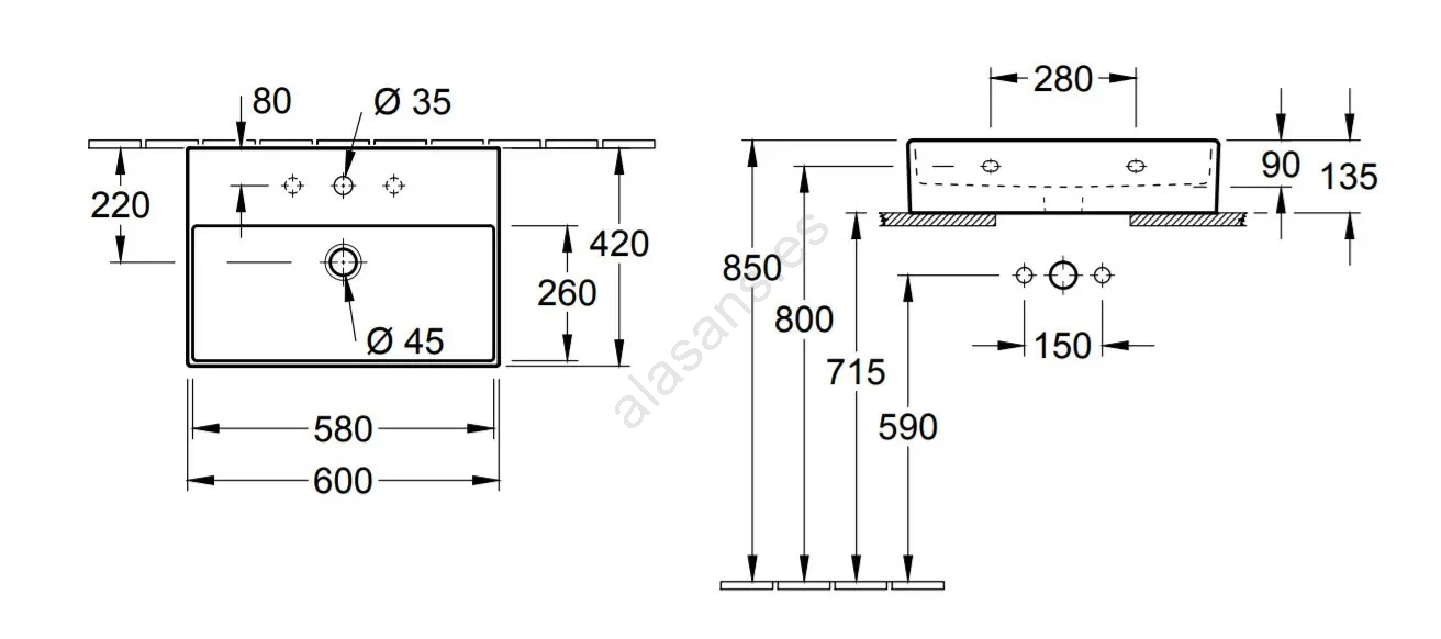 Villeroy & Boch 4A226G01 - Lavabo suspendido/para encimera MEMENTO 60x42 cm cerámica/blanco