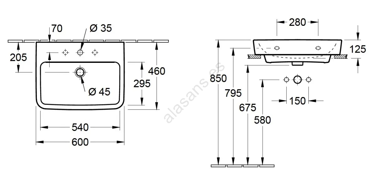 Villeroy & Boch 4A416G01 - Lavabo mural O.NOVO 60x46 cm cerámica/blanco