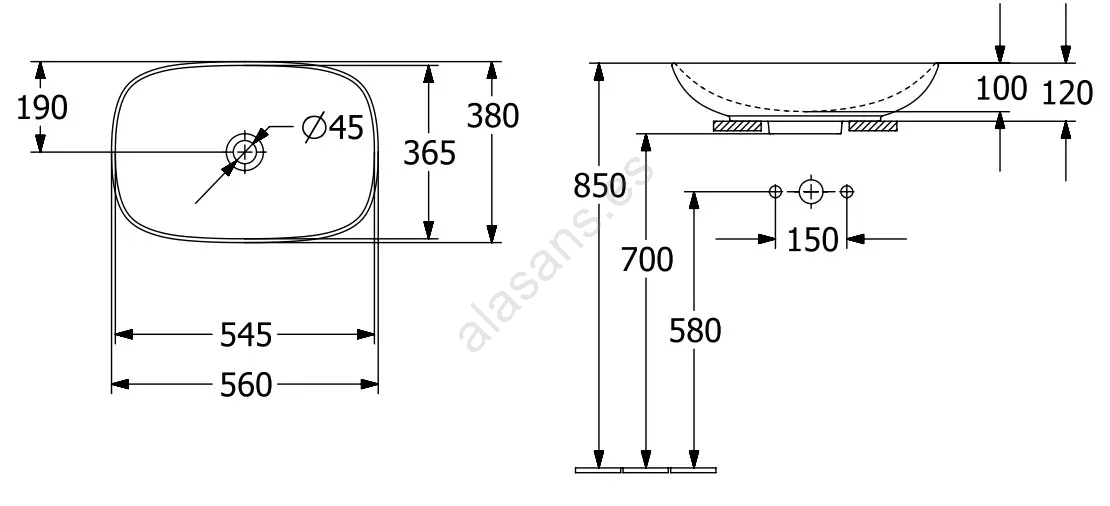 Villeroy & Boch 4A490001 - Lavabo sobre encimera LOOP&FRIENDS 56x38 cm cerámica/blanco