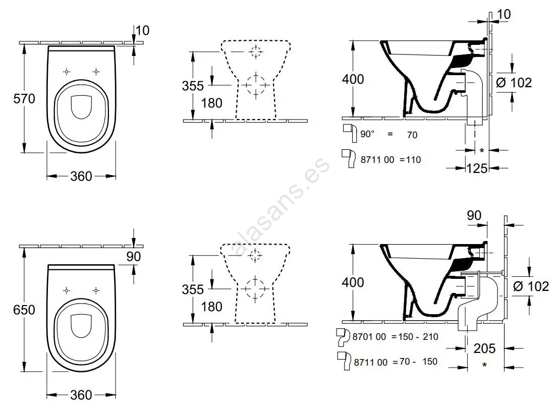Villeroy & Boch 56571001 - Inodoro de suelo O.NOVO cerámica/blanco
