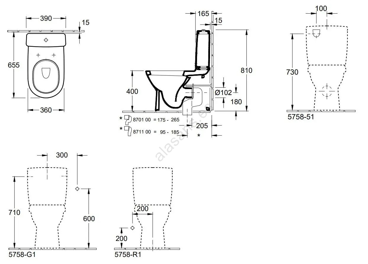 • La cisterna compatible (5760G101) y el asiento de inodoro (9M396101) están disponibles en los productos relacionados.