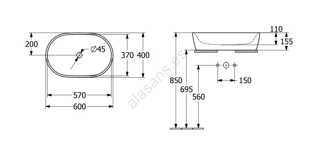 Villeroy & Boch 5A266001 - Lavabo para encimera ARCHITECTURA 60x40 cm cerámica/blanco