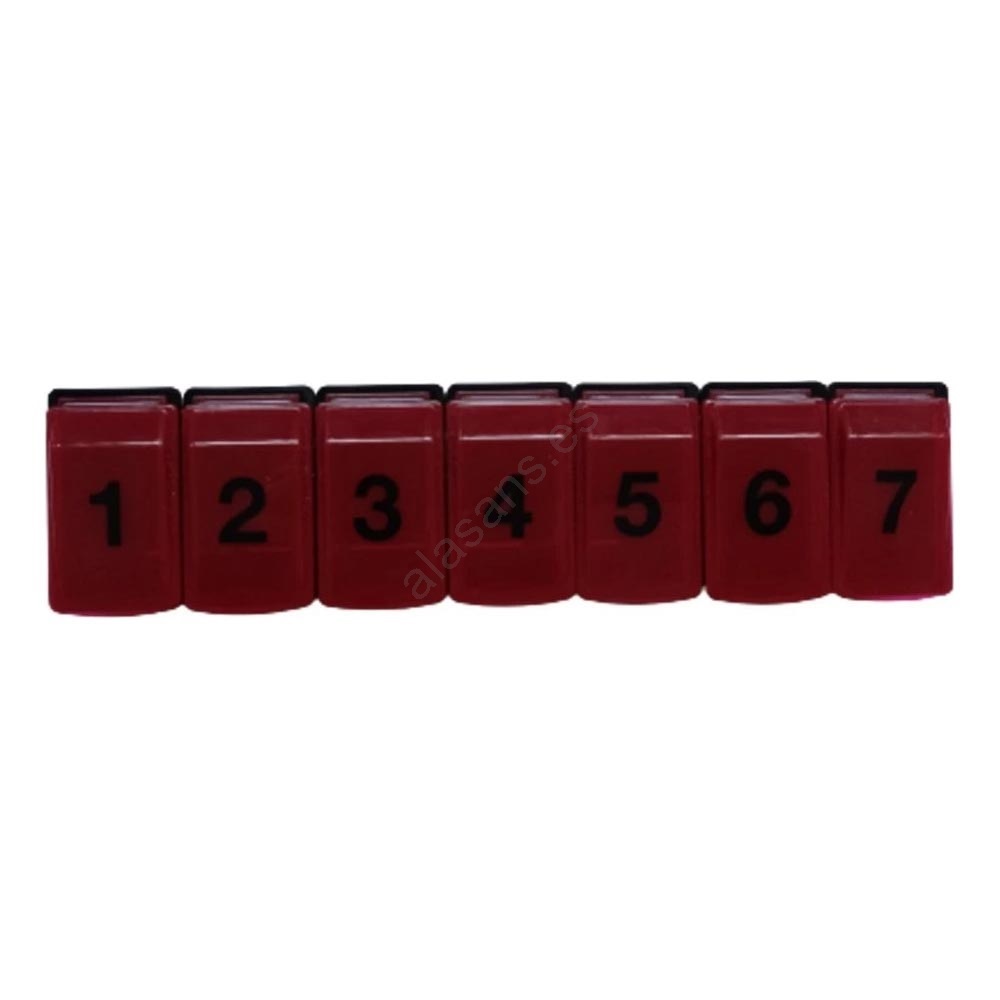 • El organizador está formado por siete compartimentos numerados (cada día), integrados en una caja principal.