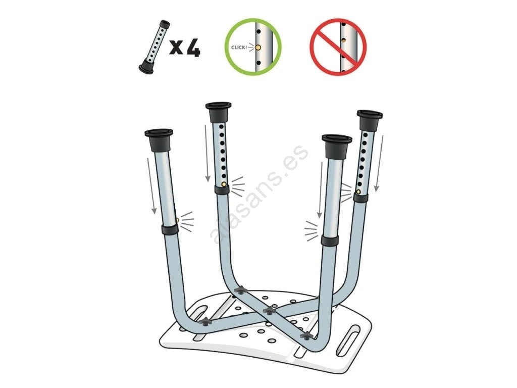 • Cuenta con patas de aluminio ligero, regulables en altura.
