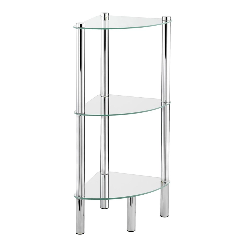 • Elegante estantería de esquina con aspecto moderno en acero inoxidable y cristal transparente.