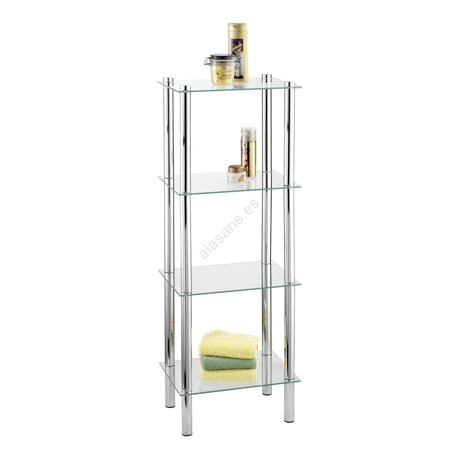• Elegante estantería de baño con 4 baldas de cristal templado de seguridad.
