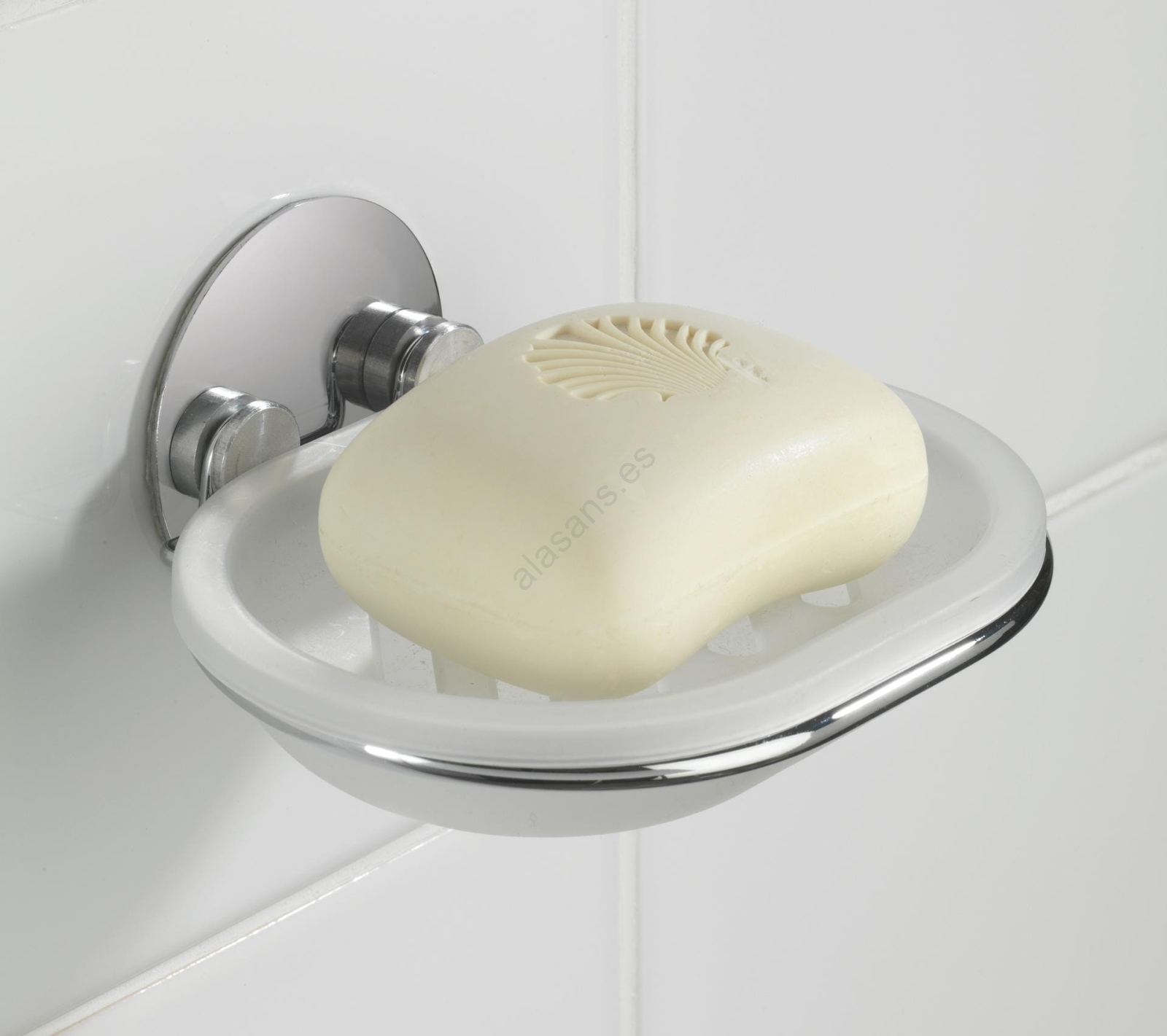 WENKO 18776100 - Jabonera con fijación TURBO-LOC, redonda de acero, 13 x 11 cm, acabado cromo brillante/blanco