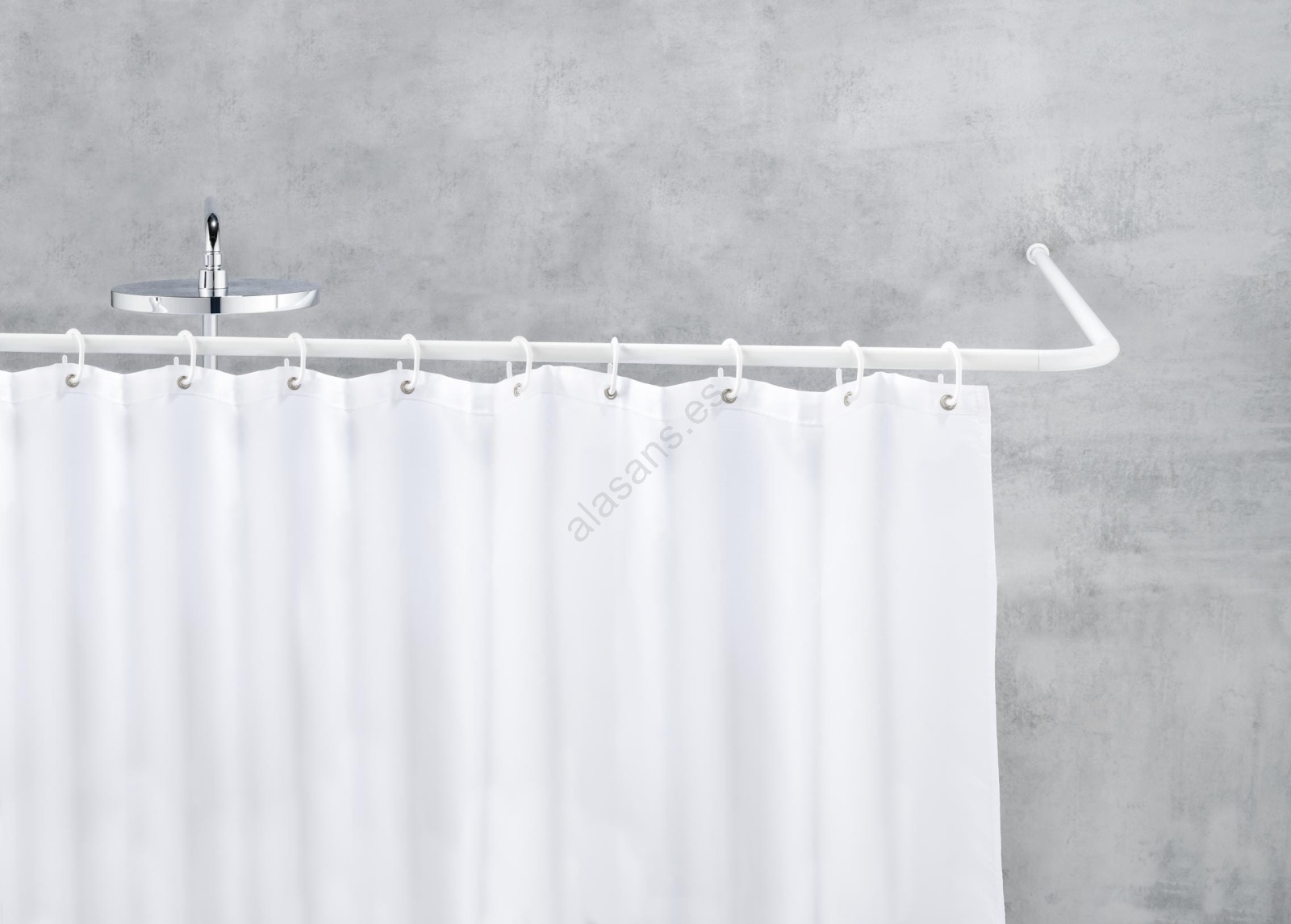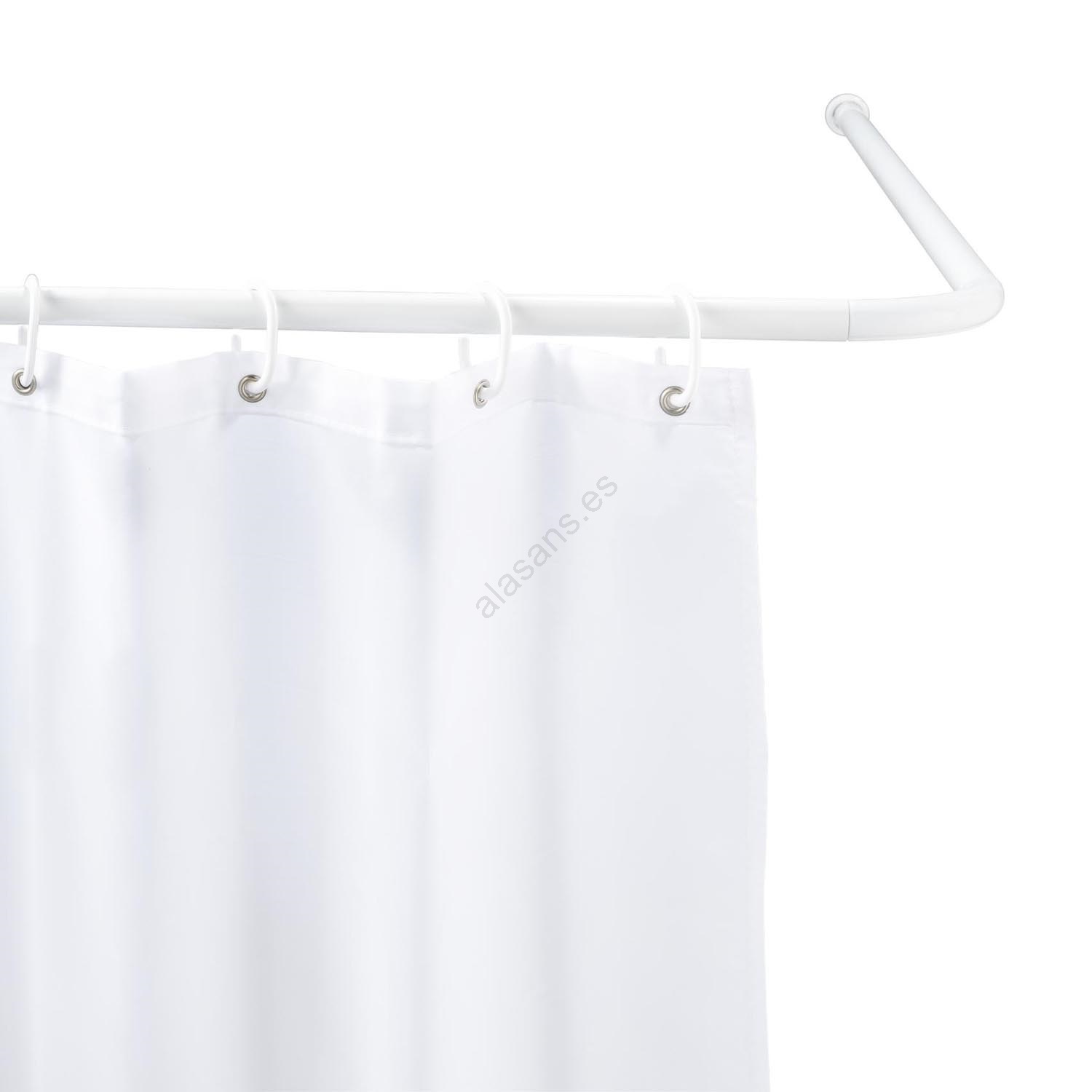 • Barra de esquina universal para cortinas de ducha y rincones de bañera.