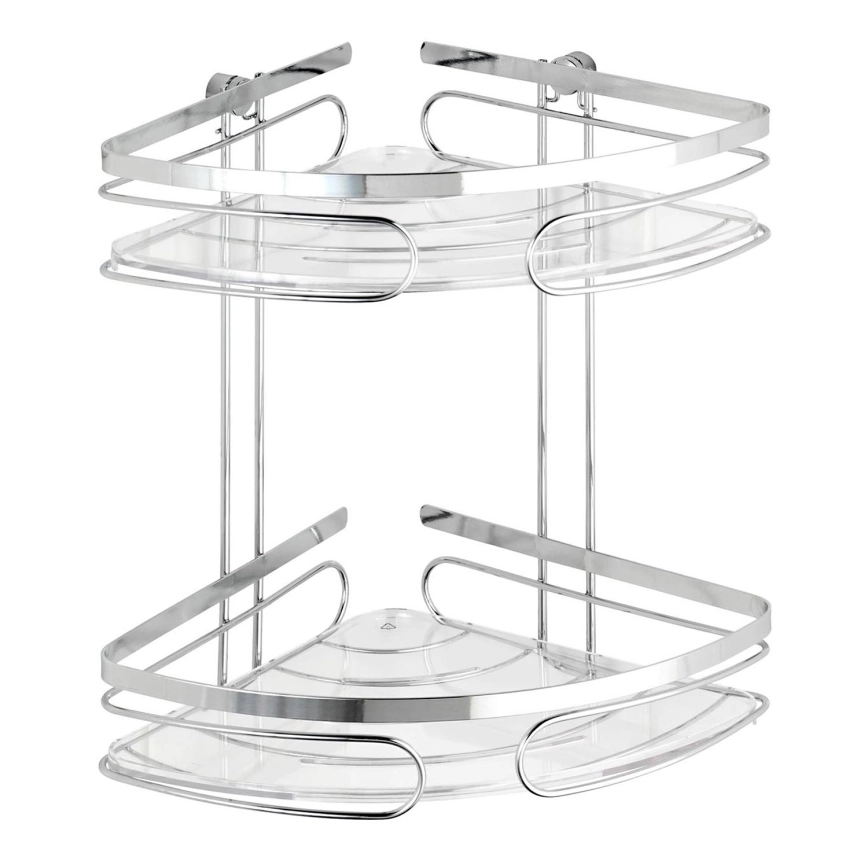 WENKO 20412100 - Estantería de esquina PREMIUM de acero inoxidable, 26,5 x 27,5 cm, acabado plateado