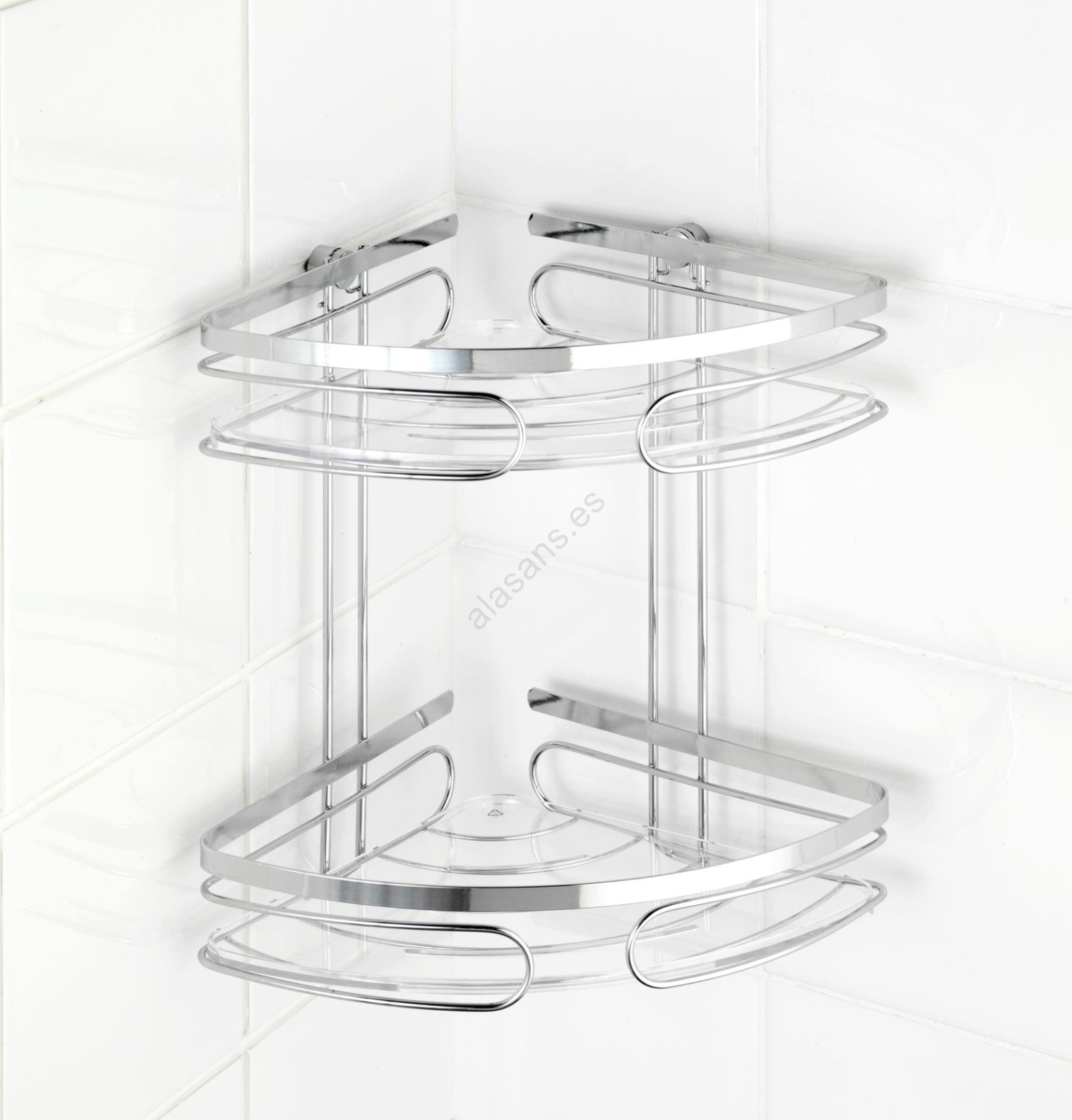 • Elegante estante de esquina con dos baldas para accesorios de baño y cosméticos.