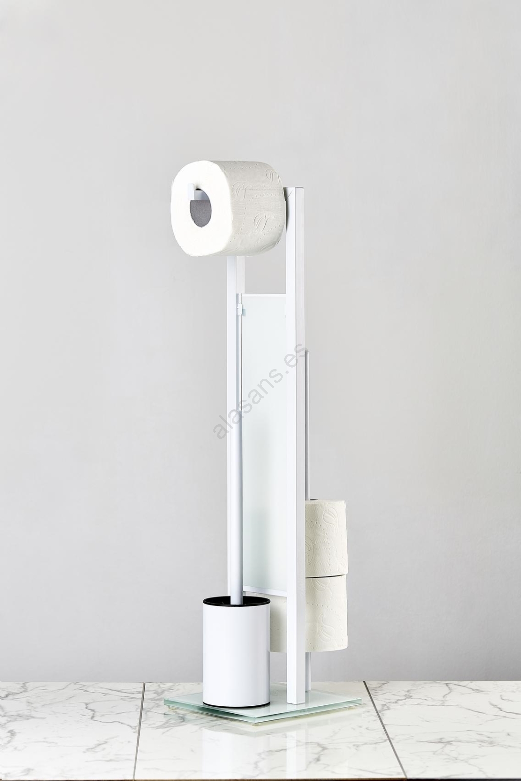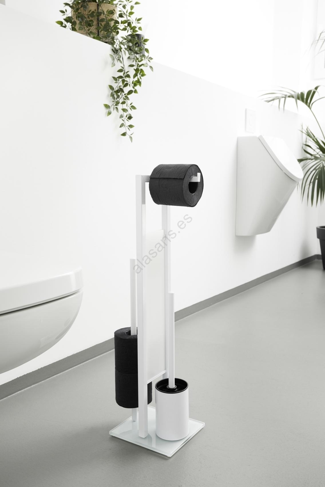 • Práctica combinación 3 en 1 – soporte para cepillo de inodoro, soporte para papel higiénico y depósito para rollos de repuesto.