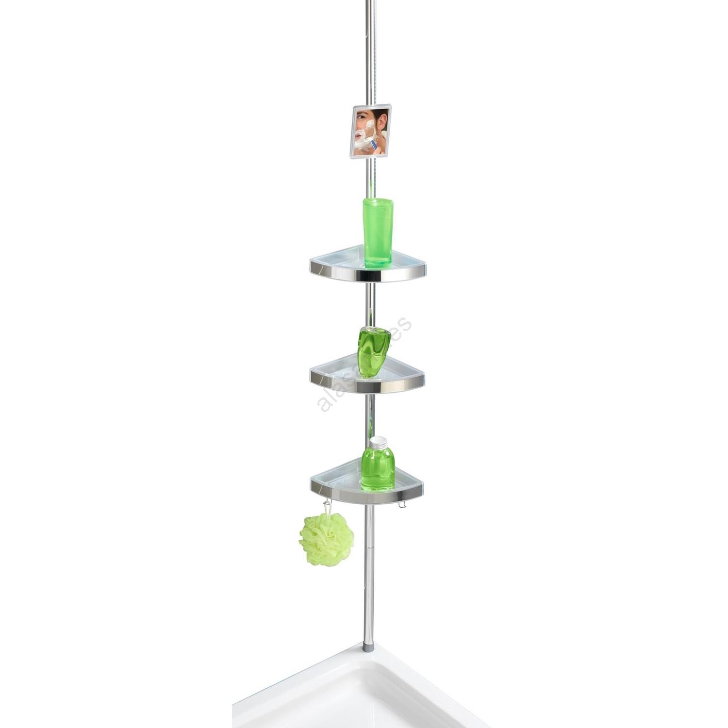 • Soporte telescópico de esquina para ducha o bañera de uso universal.