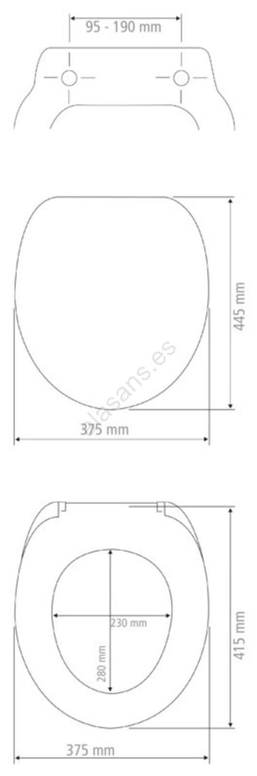 • Dimensiones ergonómicas: tapa 37,5 × 44,5 cm, aro exterior 37,5 × 41,5 cm.