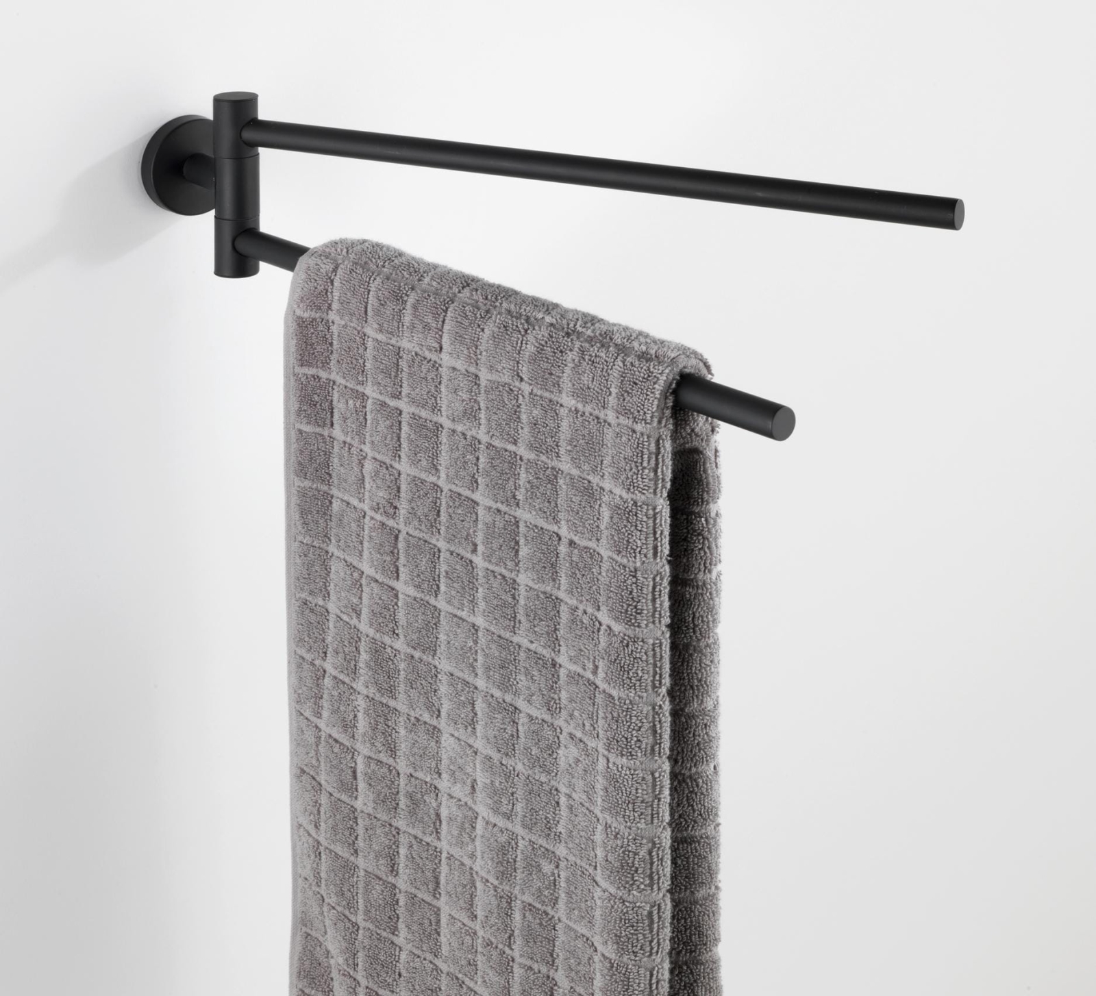 • Toallero elegante con dos brazos giratorios para optimizar el espacio.
