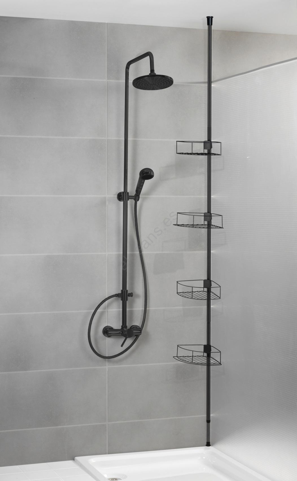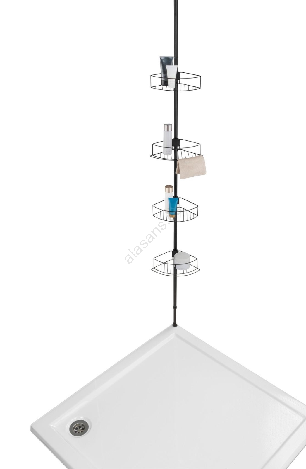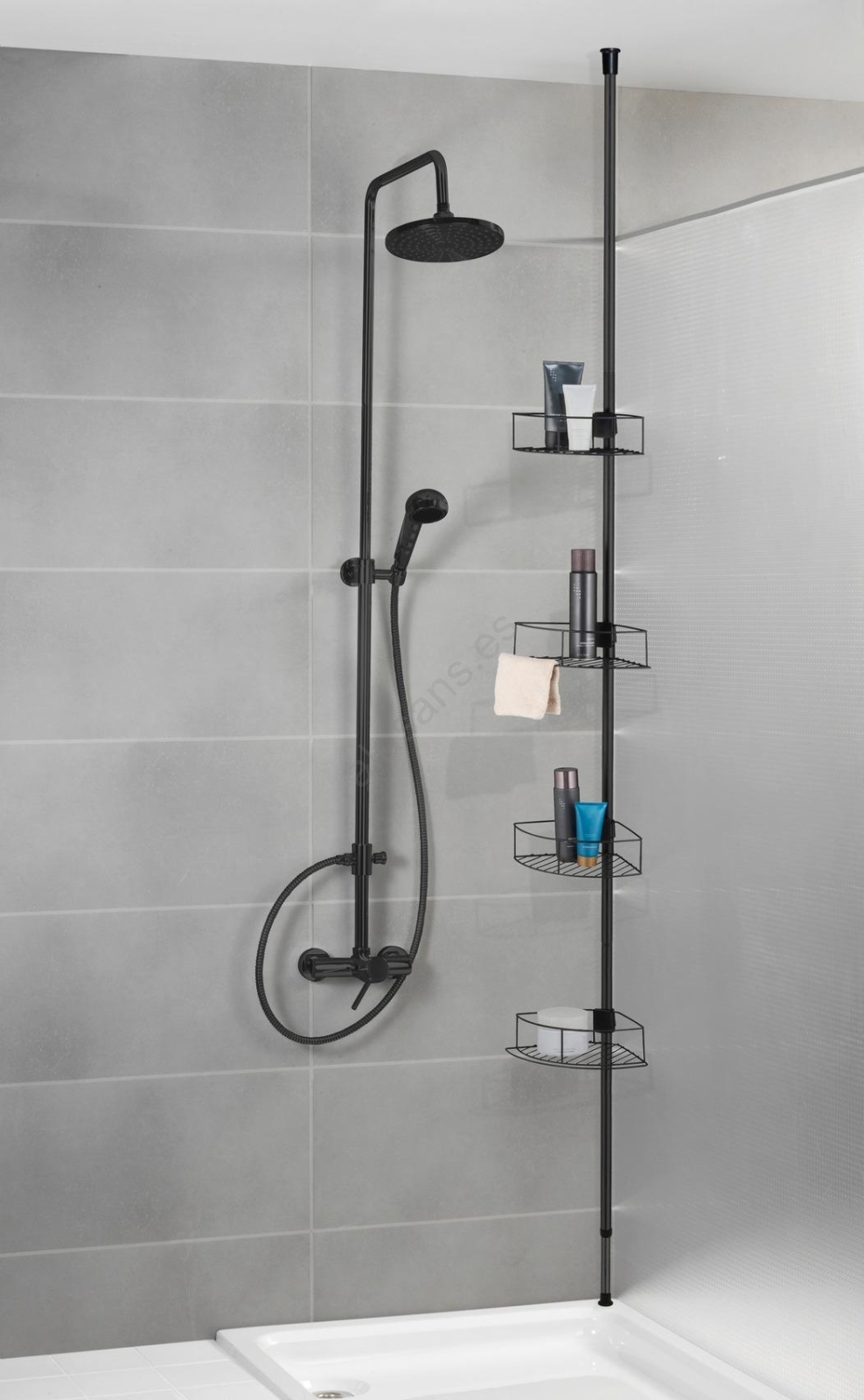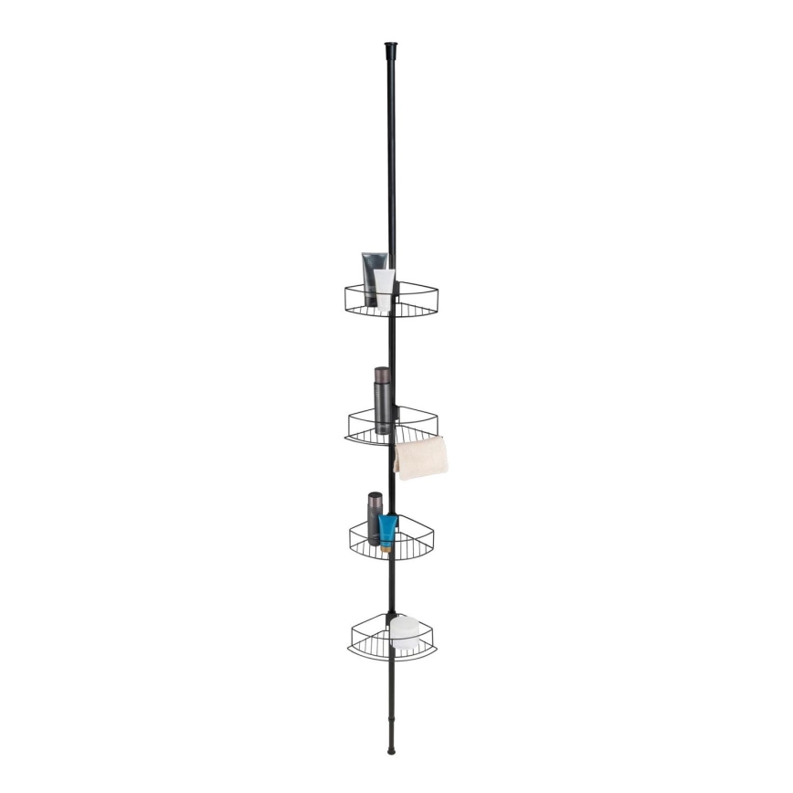 • Estantería telescópica de esquina con 4 cestas para almacenar de forma ordenada los productos de baño.